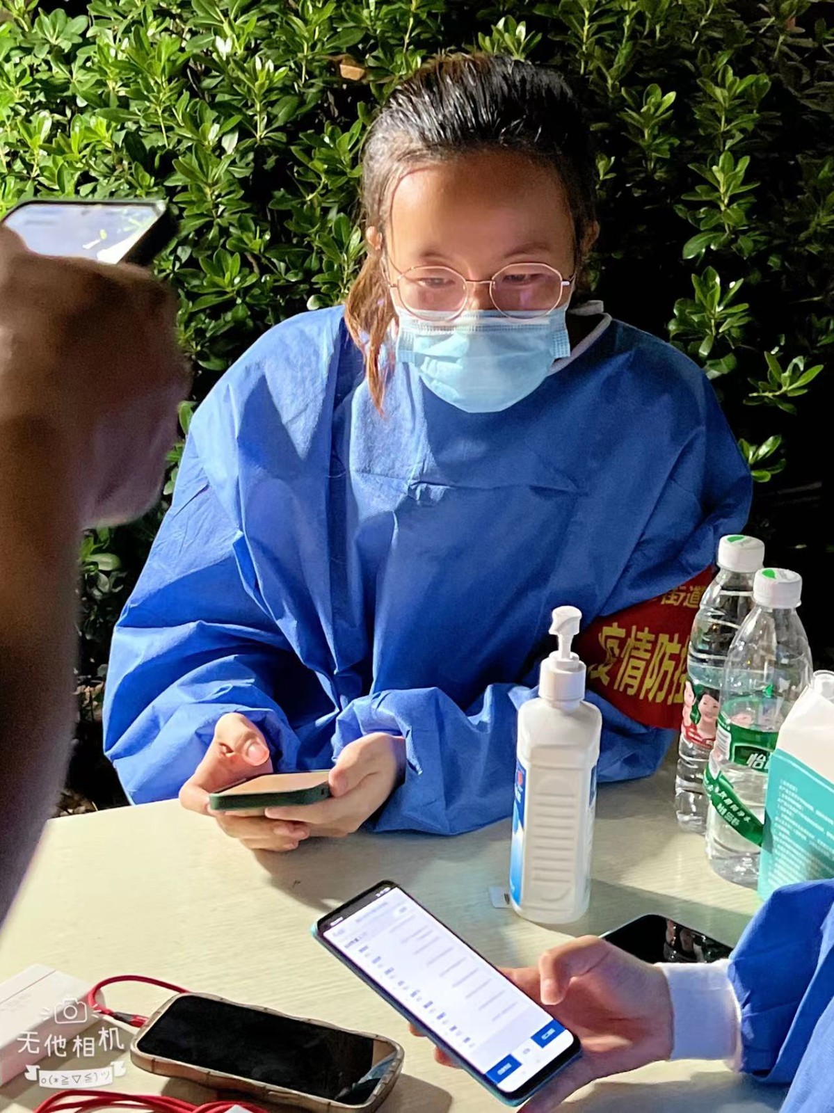 聞疫而動,向“疫”而行。熊懿佳是公司所屬川投電力一名黨員, 9月1日當天下班回家的她來不及換下工裝,直接套上“紅馬甲”,第一時間變身志愿者。經過簡要的現場培訓后開始在核酸檢測點、小區出入關卡等十幾個點位循環工作,汗水浸濕全身,手套換了又換,頻繁的酒精消毒把手泡得發白褶皺。平日里愛美的她卻毫不在意,“成都疫情沒有結束,我的腳步就不會停歇。作為一名能源人,我就是要在抗疫前線發出最耀眼的一抹光!”