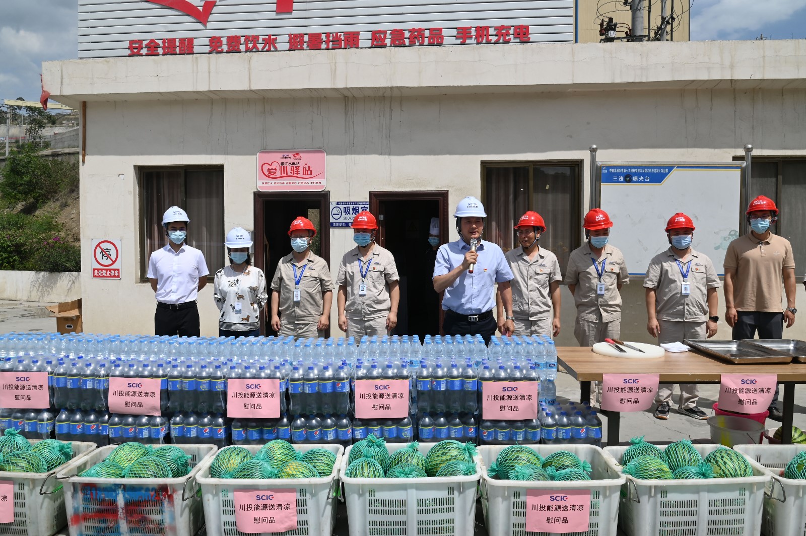 夏至剛過,高溫來襲,攀枝花已進入了高溫酷暑季節。6月22日下午,為落實全國總工會《關于做好2022年職工防暑降溫工作的通知》要求,受川投能源黨委書記、副董事長、總經理楊洪的委托,川投能源黨委副書記、工會主席冉蘭平一行頂著烈日高溫,專程到銀江水電站工地看望慰問堅守在高溫酷暑中的一線建設者。川投能源人力資源部經理王歆、紀檢工作部陳一鳴及攀水電公司領導、志愿者服務隊參加慰問。