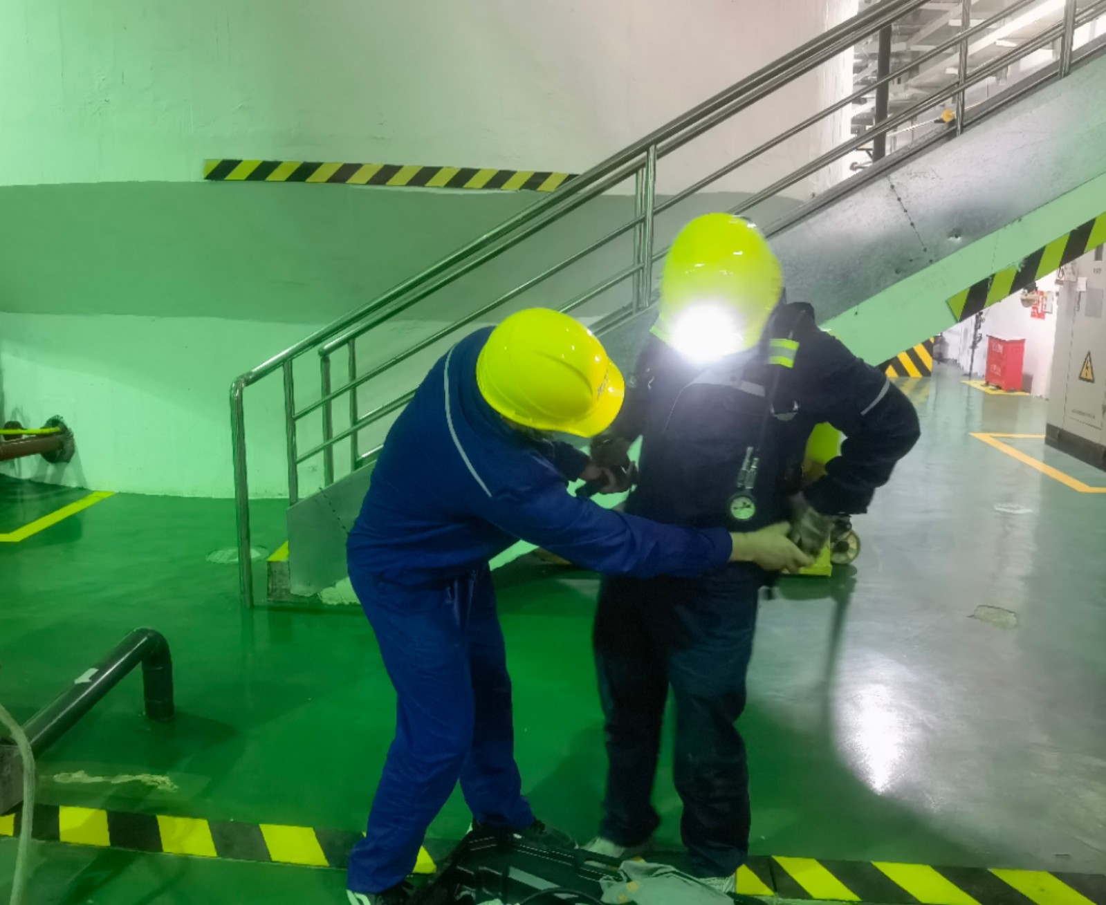 此次演練分為檢驗有限空間作業事故現場應急處置程序和應急救援設備設施使用兩個科目。