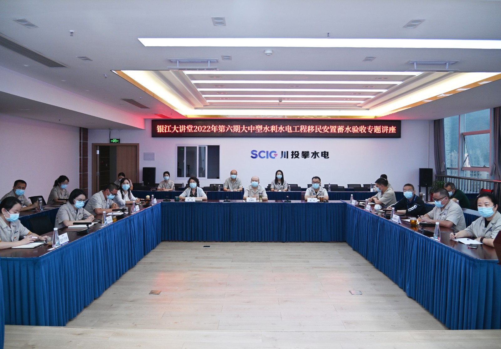 為積極推進銀江水電站建設移民安置工作,9月15日,攀水電公司開展了“銀江大講堂”第6期——大中型水利水電工程移民安置專業知識講座,公司黨總支委員、總經理吳巍嶼等領導及員工共30余人現場參會,攀枝花市、縣兩級移民安置管理機構工作人員近20人通過視頻參加會議。會議嚴格落實疫情防控要求,全程佩戴口罩。