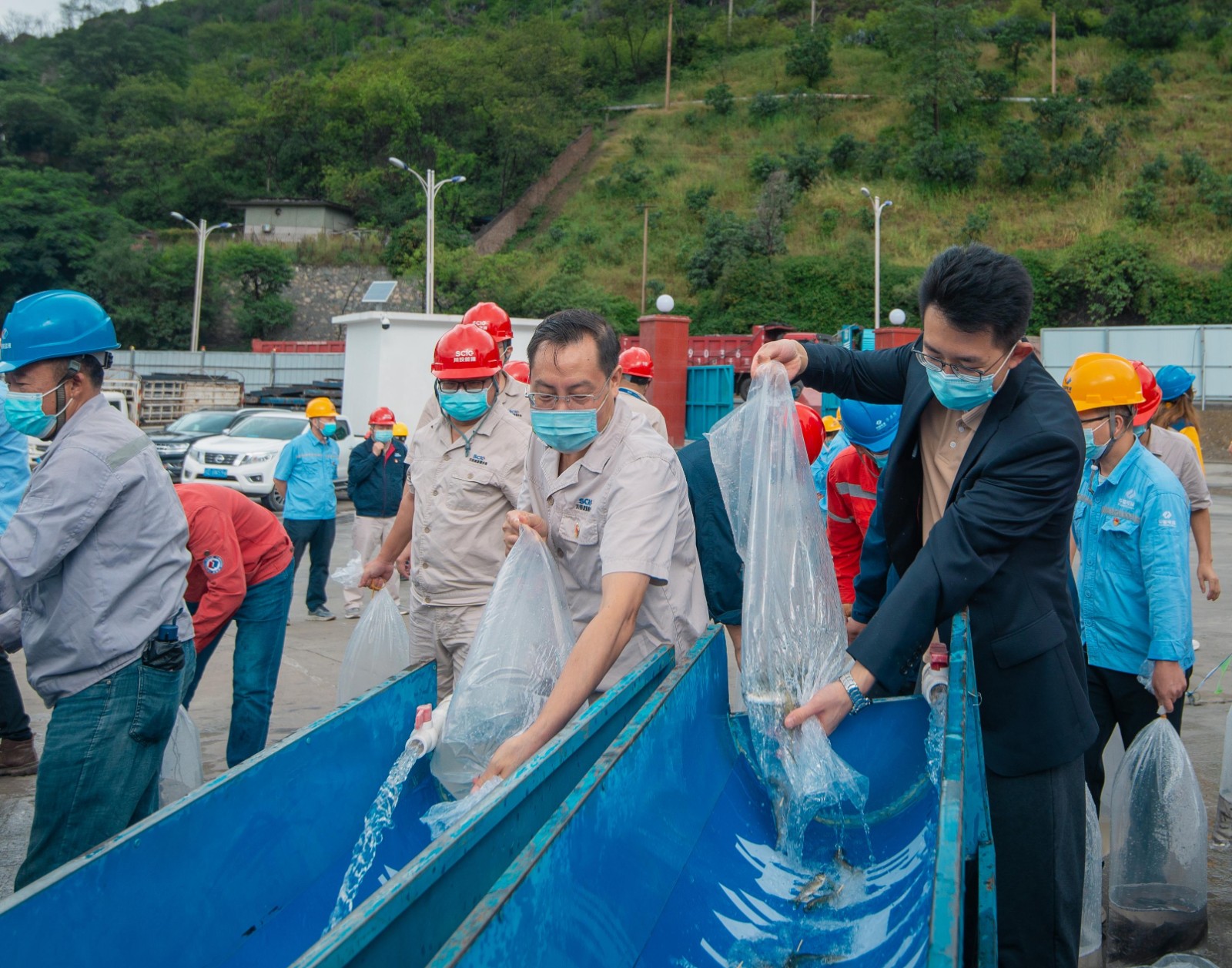 為深入貫徹新時代新發展理念,踐行習近平總書記“兩山”理論,扛起長江上游生態保護屏障政治責任,充分展示川投能源攀水電公司對生態環保工作的重視,彰顯國有企社會責任,9月28日上午,攀水電公司在銀江水電站左岸上游圍堰處組織開展了2022年度增殖放流活動,并取得圓滿成功。