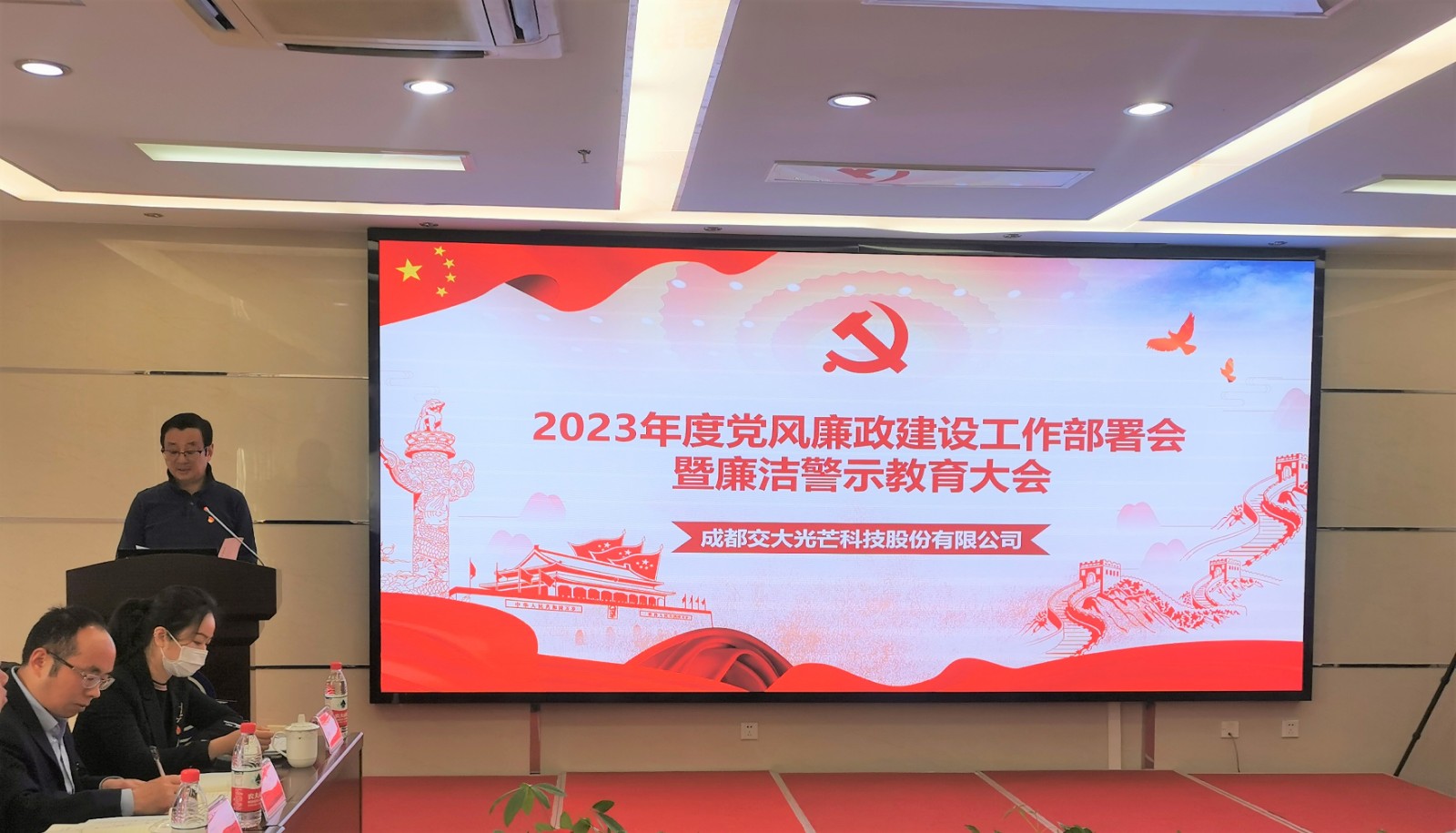 為進一步貫徹落實黨的二十大關(guān)于全面從嚴(yán)治黨戰(zhàn)略部署,深入推進公司黨風(fēng)廉政和反腐敗工作。2月3日,交大光芒召開2023年度黨風(fēng)廉政建設(shè)工作部署會暨廉潔警示教育大會,公司領(lǐng)導(dǎo)班子成員、中層副職以上管理人員、黨員參加會議。公司黨總支書記、總經(jīng)理劉成輝主持會議并作廉潔警示談話。