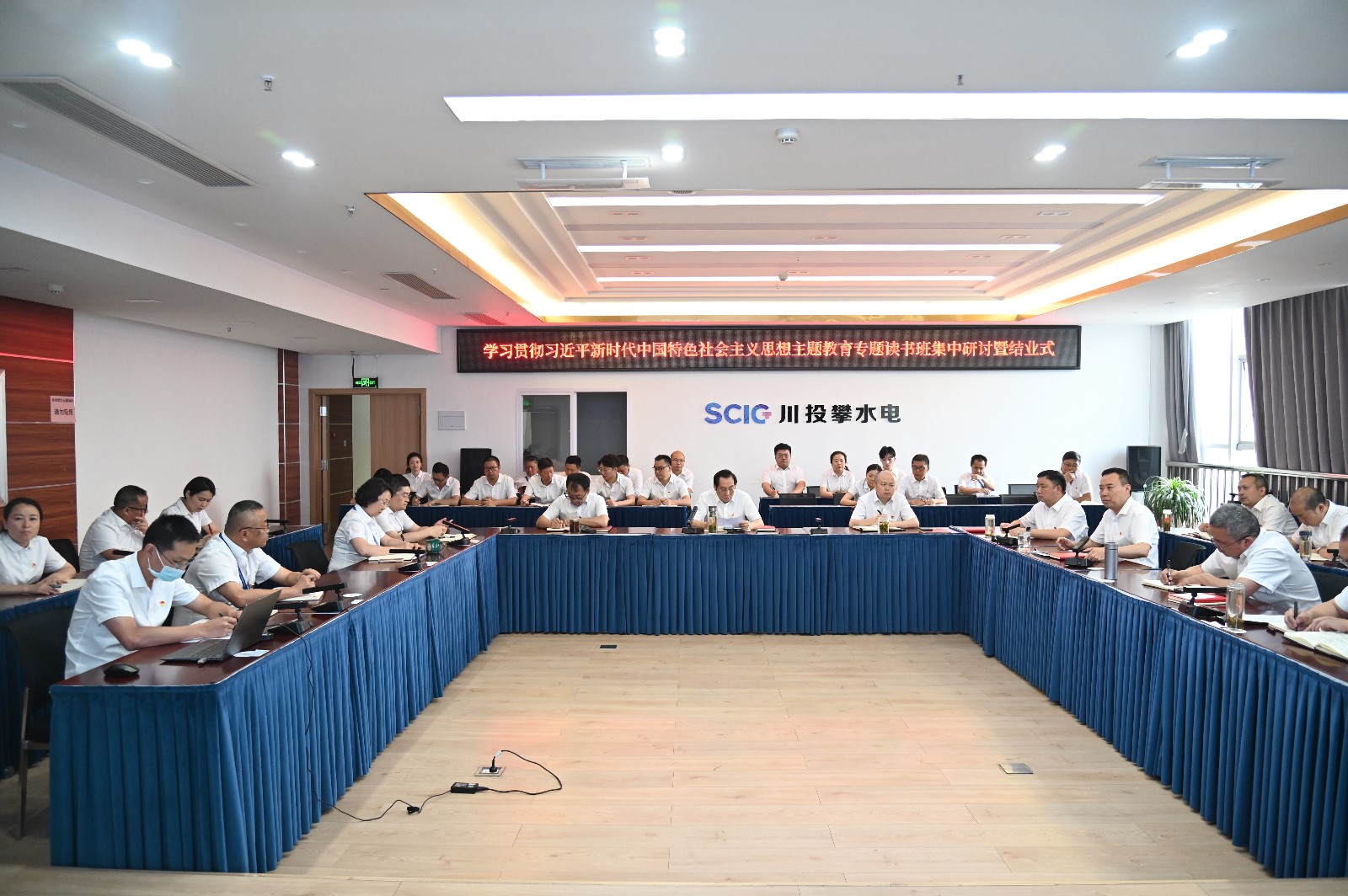 為深入開展學習貫徹習近平新時代中國特色社會主義思想主題教育,牢牢把握“學思想、強黨性、重實踐、建新功”的總要求,攀水電黨總支學習貫徹習近平新時代中國特色社會主義思想主題教育專題讀書班經(jīng)過了幾天緊張而充實的學習課程,在集中學習、自選學習、專家授課的基礎上,開展了分組討論和集中研討。分組討論由川投能源副總經(jīng)理、攀水電公司黨總支書記、董事長、攀新能源公司董事長徐孝剛作巡回指導,其他班子成員擔任召集人,分成工程建設、項目發(fā)展和創(chuàng)新管理及作風建設三個小組,邀請相關部門黨員職工代表共40余人參加,大興調(diào)查研究之風,開展頭腦風暴,碰撞思想火花,充分征集意見和建議。