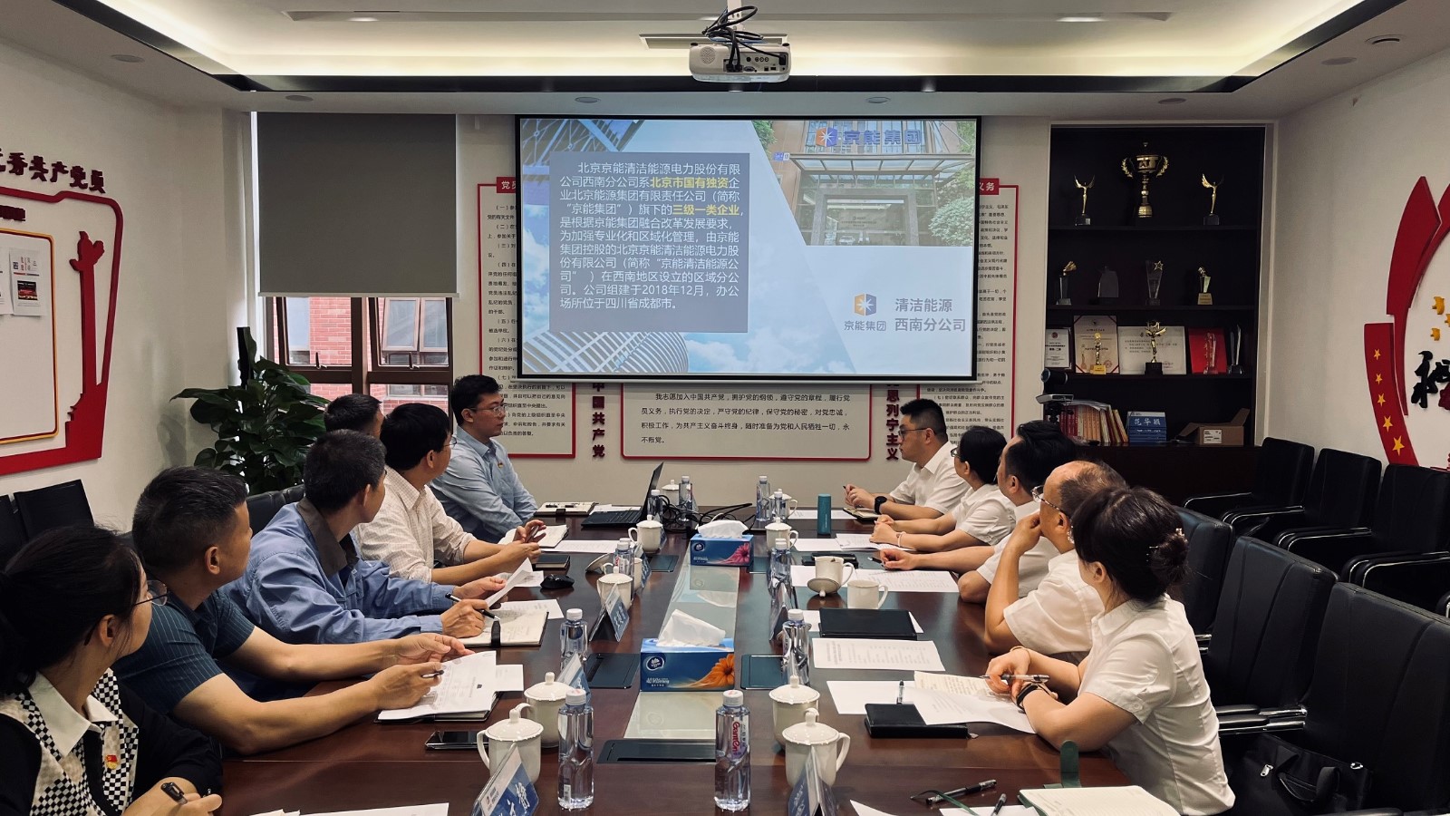 為貫徹落實黨中央《關于在全黨大興調查研究的工作方案》和省委關于大興調查研究的實施方案精神,按照集團公司和川投能源相關要求,川投電力以優化法人治理結構為課題開展調研活動。6月14日上午,公司黨委書記、董事長楊濤帶隊拜訪北京京能清潔能源電力股份有限公司西南分公司(以下簡稱“京能清潔能源西南公司”)并進行座談交流。
