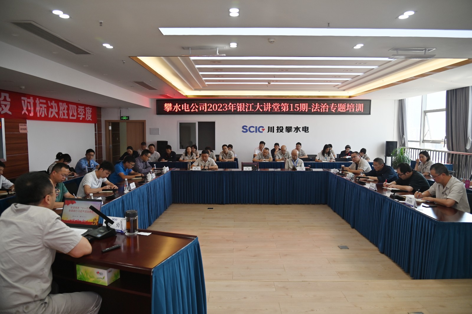 為深入學習宣貫黨的二十大精神,認真貫徹落實習近平法治思想,積極落實省國資委、川投集團、川投能源關于“送法進企業”活動要求,進一步提升企業依法治理和合規經營能力,切實增強廣大干部職工法律意識和法治素養,2023年10月31日,公司精心組織開展了第15期銀江大講堂——法治專題培訓,公司在攀領導、員工及參建單位人員共計40余人參加培訓。