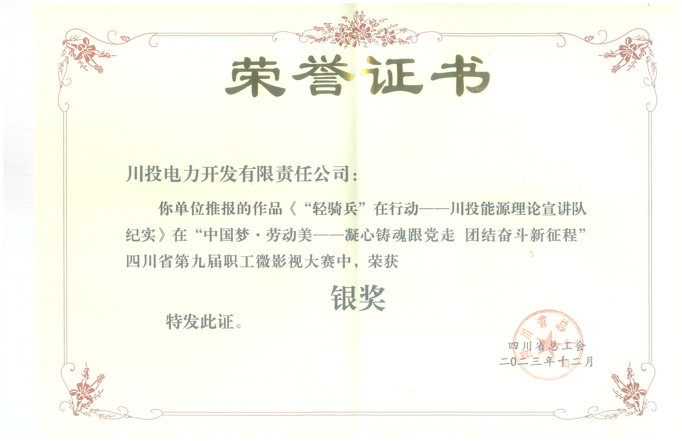 近日,“中國夢·勞動美——凝心鑄魂跟黨走 團結奮斗新征程”四川省總工會第九屆職工微影視大賽活動落下帷幕,由川投集團工會選送、川投能源及所屬川投電力組織拍攝的微電影《“輕騎兵”在行動——川投能源理論宣講隊紀實》在全省176部作品中脫穎而出,榮獲故事類微電影銀獎。