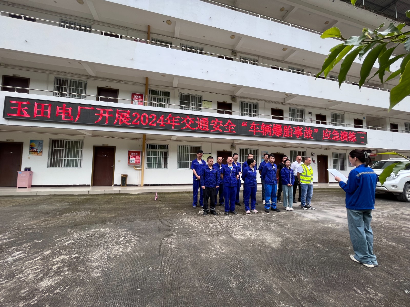 玉田電廠進廠公路為鄉(xiāng)村水泥道和原始基坑路,路面窄、彎道多且存在駕駛視野盲區(qū),汛期雨后道路積水多、山上滾石現(xiàn)象時有發(fā)生,道路交通存在安全風險隱患。為提高電廠駕駛員的應急響應能力,確保發(fā)生車輛爆胎等突發(fā)意外時能迅速有效處置,提高自救能力,近日,玉田電廠開展車輛爆胎應急演練。