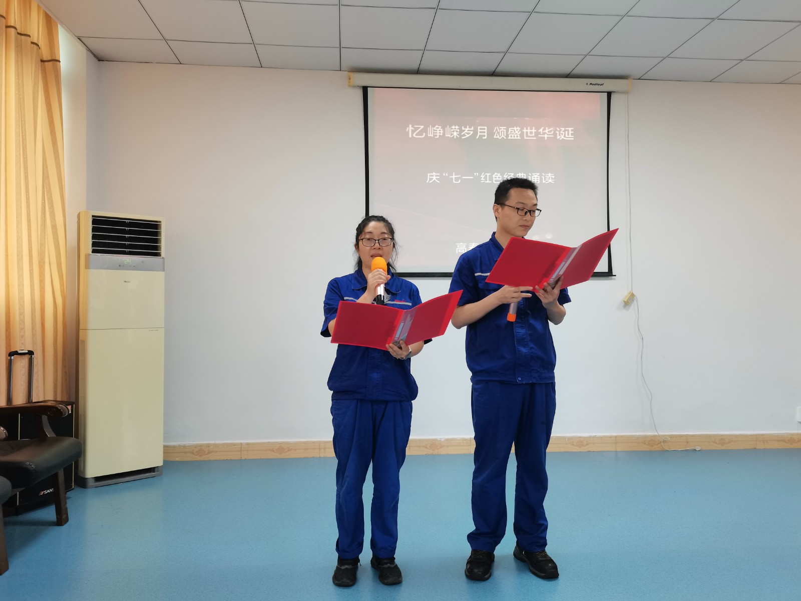 7月10日上午,高奉山電廠會議室氣氛熱烈,為慶祝中國共產黨建黨103周年,歌頌黨的豐功偉績,激發全體黨員愛黨愛國、敬業奉獻的熱情,電廠黨支部組織開展了“憶崢嶸歲月,頌盛世華章”紅色經典誦讀主題黨日活動。