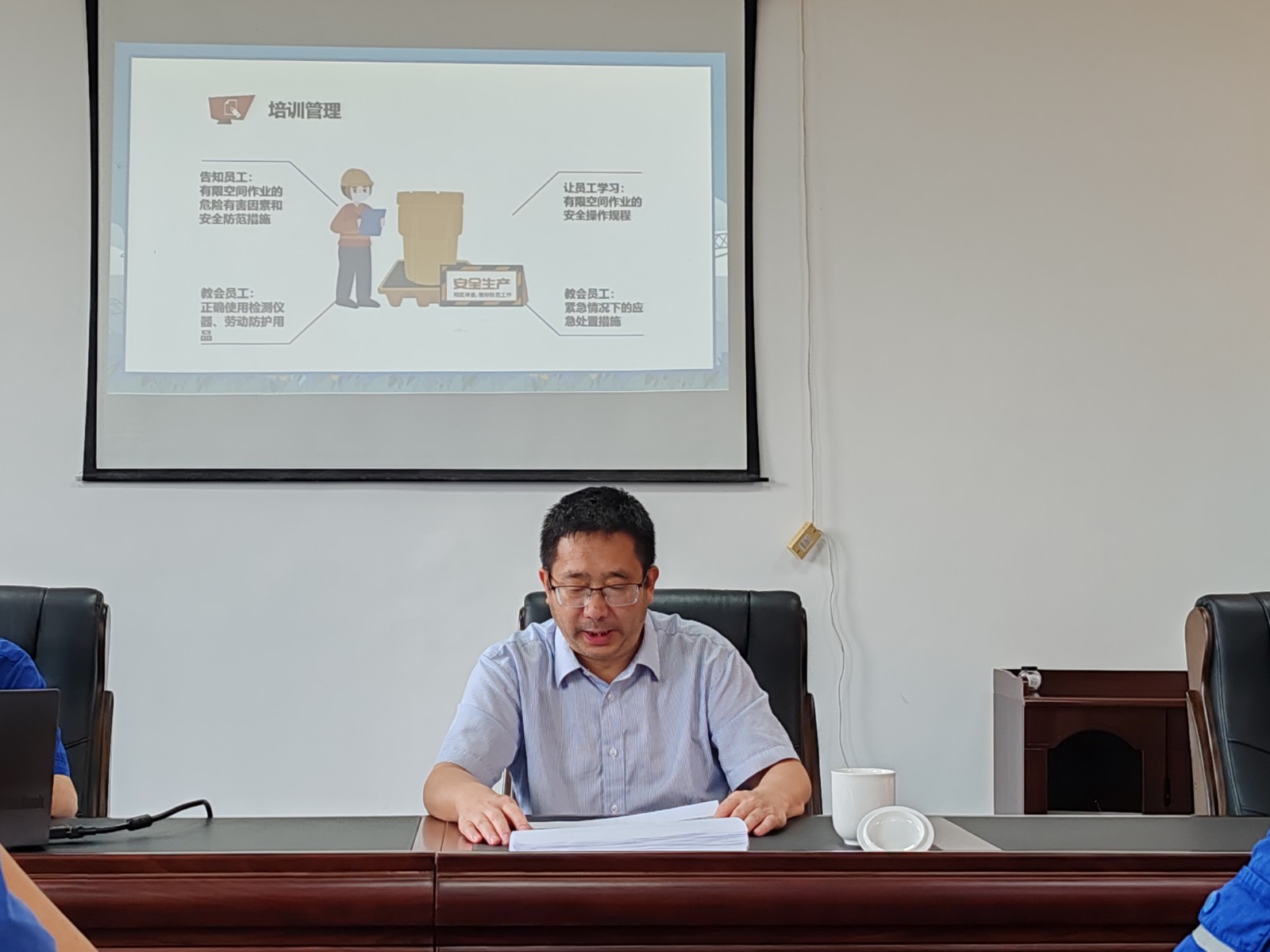 培訓現場,王偉結合電廠實際情況,重點圍繞有限空間場所和風險辨識、作業安全要點和安全管控、安全防護設備和應急處置等內容進行全面系統講解,以案說法,讓參訓人員深刻認識到加強有限空間作業管理的重要性,樹牢“切忌盲目施救”的應急救援意識,為最大限度減少有限空間作業事故發生夯實理論基礎。