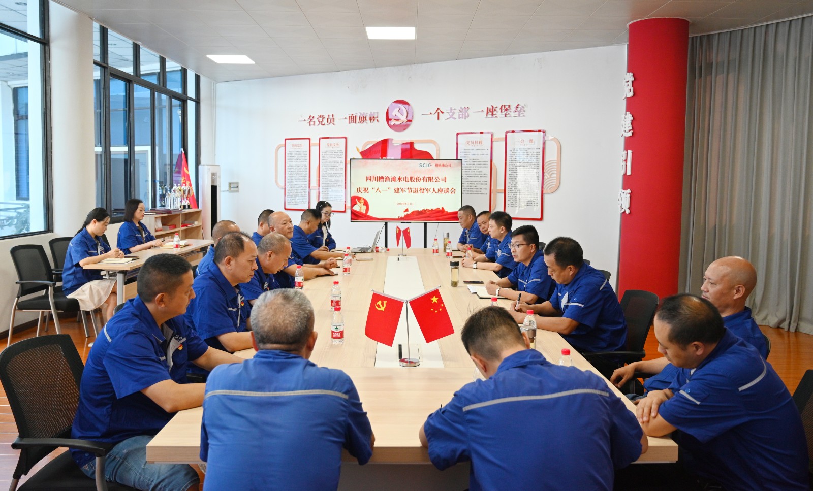 8月1日上午,槽漁灘公司、天彭電力公司組織召開退役軍人座談會,集中學習習近平總書記對退役軍人工作作出重要指示精神,退役軍人代表回憶了自己難忘的軍旅生涯,暢談了在工作中的感想和體會,公司領導班子成員向退役軍人代表送上了節日慰問,退役軍人齊唱軍歌《咱當兵的人》《團結就是力量》,在整齊嘹亮的歌聲中,共慶“八一”建軍節。