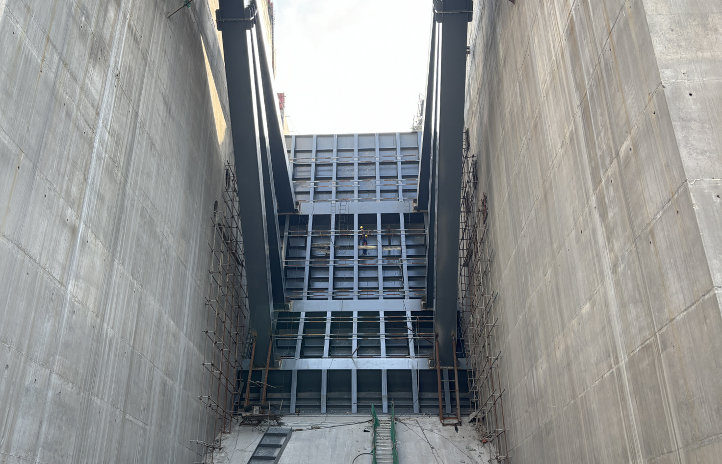 徐孝剛表示,金屬結(jié)構(gòu)安裝是實現(xiàn)工程下閘蓄水目標(biāo)的核心任務(wù),自7月下旬首節(jié)弧形工作門吊裝以來,在不到3個月的時間內(nèi),將要完成近萬噸的安裝工程量,工期緊、任務(wù)重、難度大,參建各方超前謀劃、提前部署,深入開展設(shè)計及施工優(yōu)化,多次專題研討安裝方案并組織專家論證,突破多項常規(guī)方法,采取鋼絞線提升裝置安裝尾水事故檢修門、臨時平臺配合汽車吊站位安裝弧形工作門、門槽安裝及其二期混凝土澆筑工序循環(huán)優(yōu)化等一系列超常規(guī)措施,大幅縮短了安裝工期,取得了階段性成果,希望各參建單位持續(xù)保持昂揚斗志、乘勢而上,協(xié)同并進、合力攻堅,為全面實現(xiàn)工程建設(shè)目標(biāo)不懈奮斗。