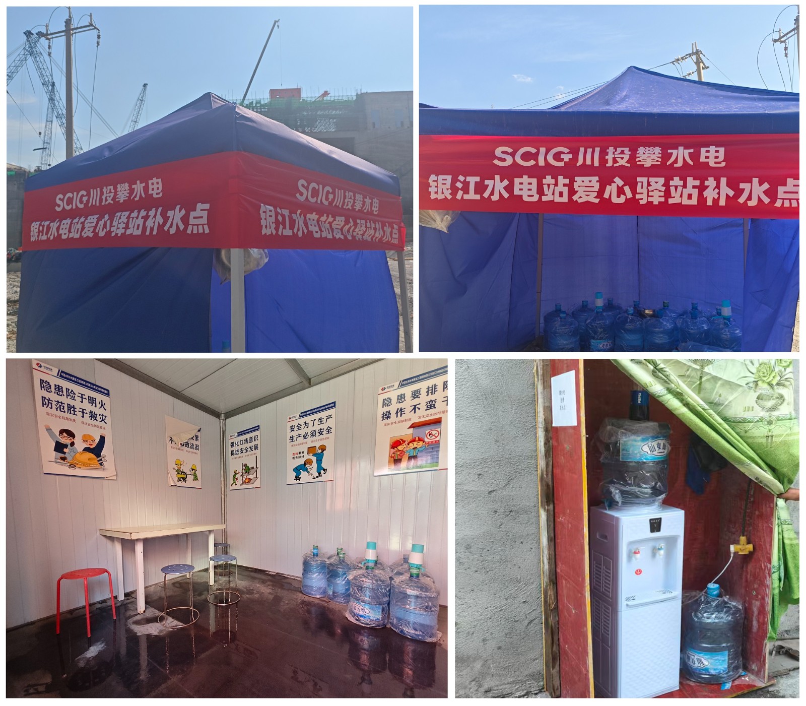 鑒于近期天氣炎熱,持續高溫給一線工人作業帶來了巨大挑戰,為解決一線工人在施工過程中“飲水難”的問題,公司在銀江水電站壩頂、GIS樓、副廠房、魚道、溢流壩等施工人員密集的部位建立了五處“愛心補水站”,完善送水補水機制,為奮戰在烈日下的工友們送去了絲絲涼意與深切關懷,此舉為大家解決了實際困難,贏得了工友們的廣泛贊譽。