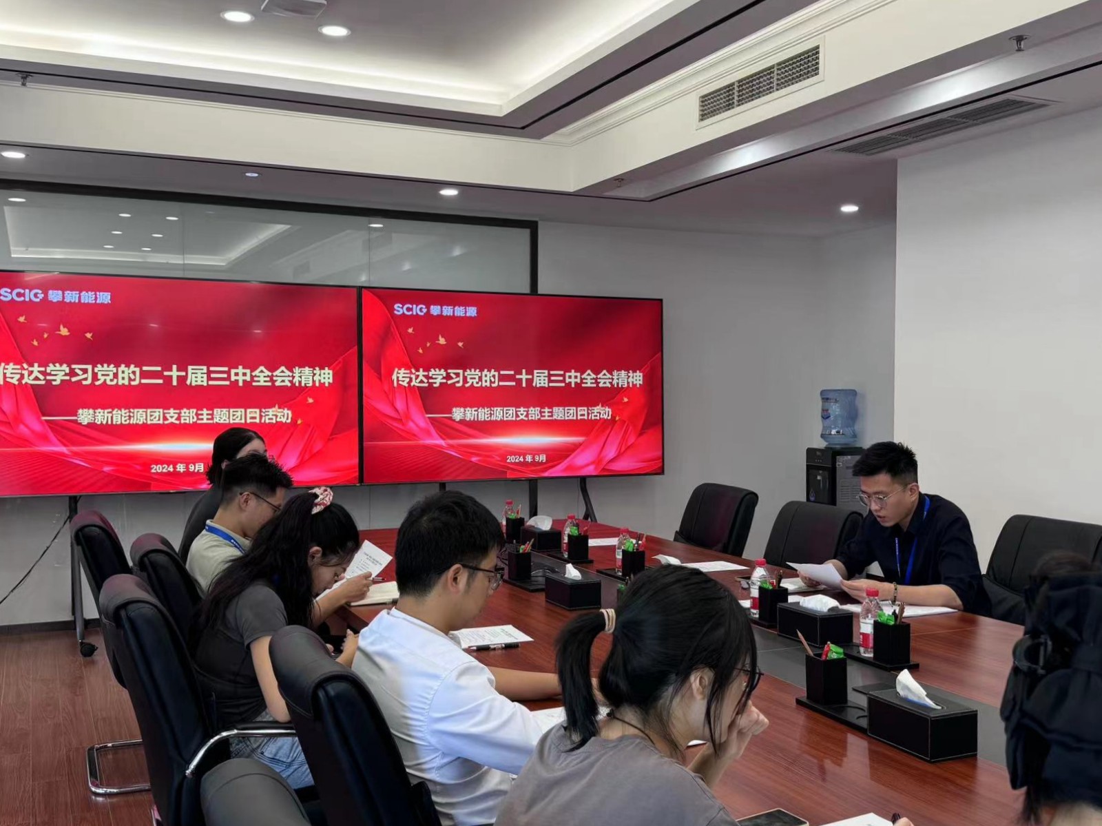 近日,攀新能源公司團(tuán)支部在川投大廈707會議室舉行2024年9月主題團(tuán)日活動,專題傳達(dá)學(xué)習(xí)《中國共產(chǎn)黨第二十屆中央委員會第三次全體會議公報》,學(xué)習(xí)貫徹黨的二十屆三中全會精神。攀新能源團(tuán)支部書記、經(jīng)營管理部經(jīng)理潘鑫主持并領(lǐng)學(xué),公司全體團(tuán)員及屏山抽蓄公司全體團(tuán)員參會。