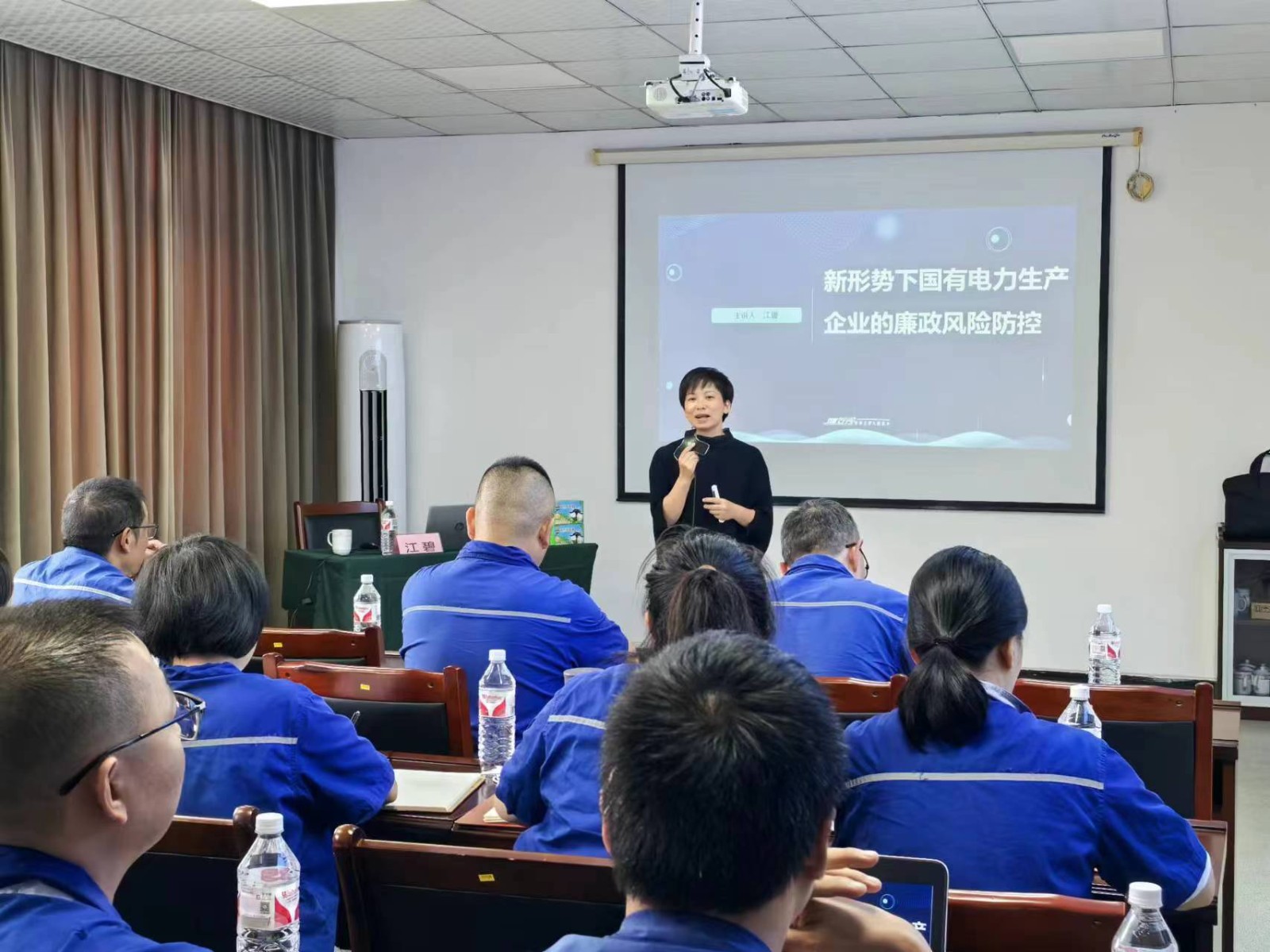 為全面提升電力生產(chǎn)企業(yè)的廉政風(fēng)險防范能力,筑牢電廠干部職工拒腐防變的思想防線,近日,百花灘黨支部承辦川投電力2024年第三季度“講廉規(guī) 守廉矩”三期廉潔教育輪訓(xùn)交流會,邀請洪雅縣紀委監(jiān)委駐財政局紀檢監(jiān)察組組長江碧,現(xiàn)場講授《新形勢下電力生產(chǎn)企業(yè)的廉政風(fēng)險》知識講座。