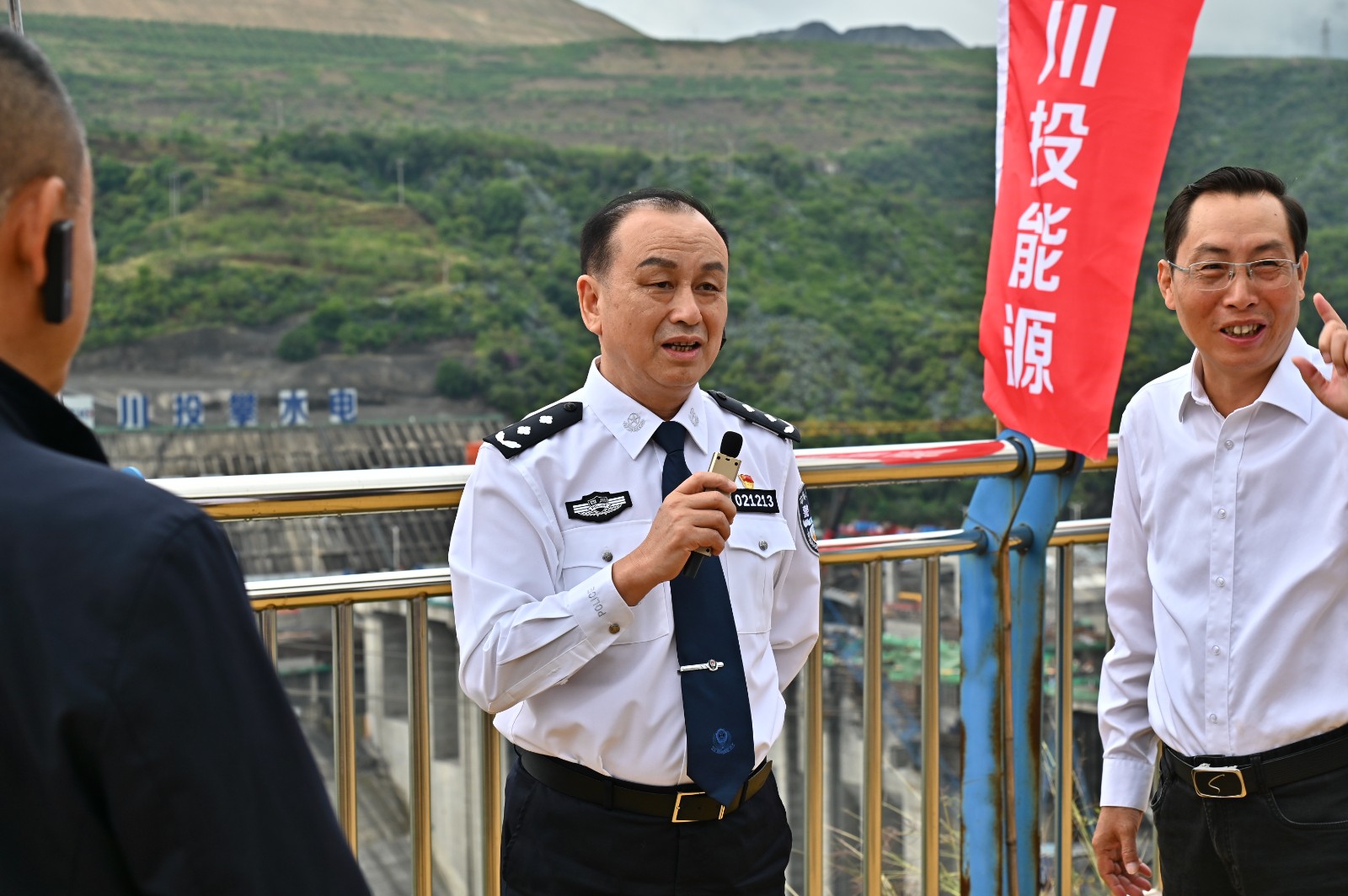10月16日,攀枝花市公安機關服務保障經濟高質量發展現場會暨“警隨‘企’后”行動啟動儀式隆重舉行,市級相關部門、各縣(區)政府、公安機關、在攀國有企業和民營企業代表共計100余人參加會議,攀枝花市政府副市長、公安局局長周強帶隊到銀江水電站及重大項目警長辦公室現場調研,川投能源副總經理、攀水電公司黨總支書記、董事長徐孝剛參加活動。