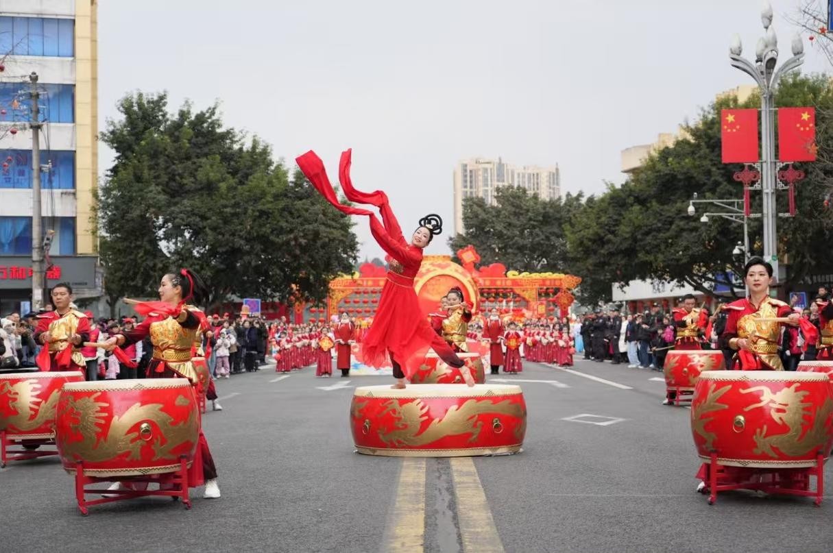 洪雅民俗文化巡展活動(dòng)是洪雅縣每年春節(jié)期間的傳統(tǒng)文化品牌,表演節(jié)目豐富多彩、精彩紛呈,深受全縣人民喜愛(ài)。活動(dòng)當(dāng)日,民俗文化巡游隊(duì)伍從三彩廣場(chǎng)出發(fā),一直到洪雅廣場(chǎng),現(xiàn)場(chǎng)人頭攢動(dòng),熱鬧非凡。隨著激昂的鼓點(diǎn)響起,大鼓隊(duì)員們手中的鼓槌上下翻飛,富有節(jié)奏感地敲擊著大鼓。磅礴的氣勢(shì)、靈動(dòng)的韻律、美妙的舞姿瞬間點(diǎn)燃了現(xiàn)場(chǎng)氣氛,吸引了眾多市民駐足觀看、拍手稱贊。