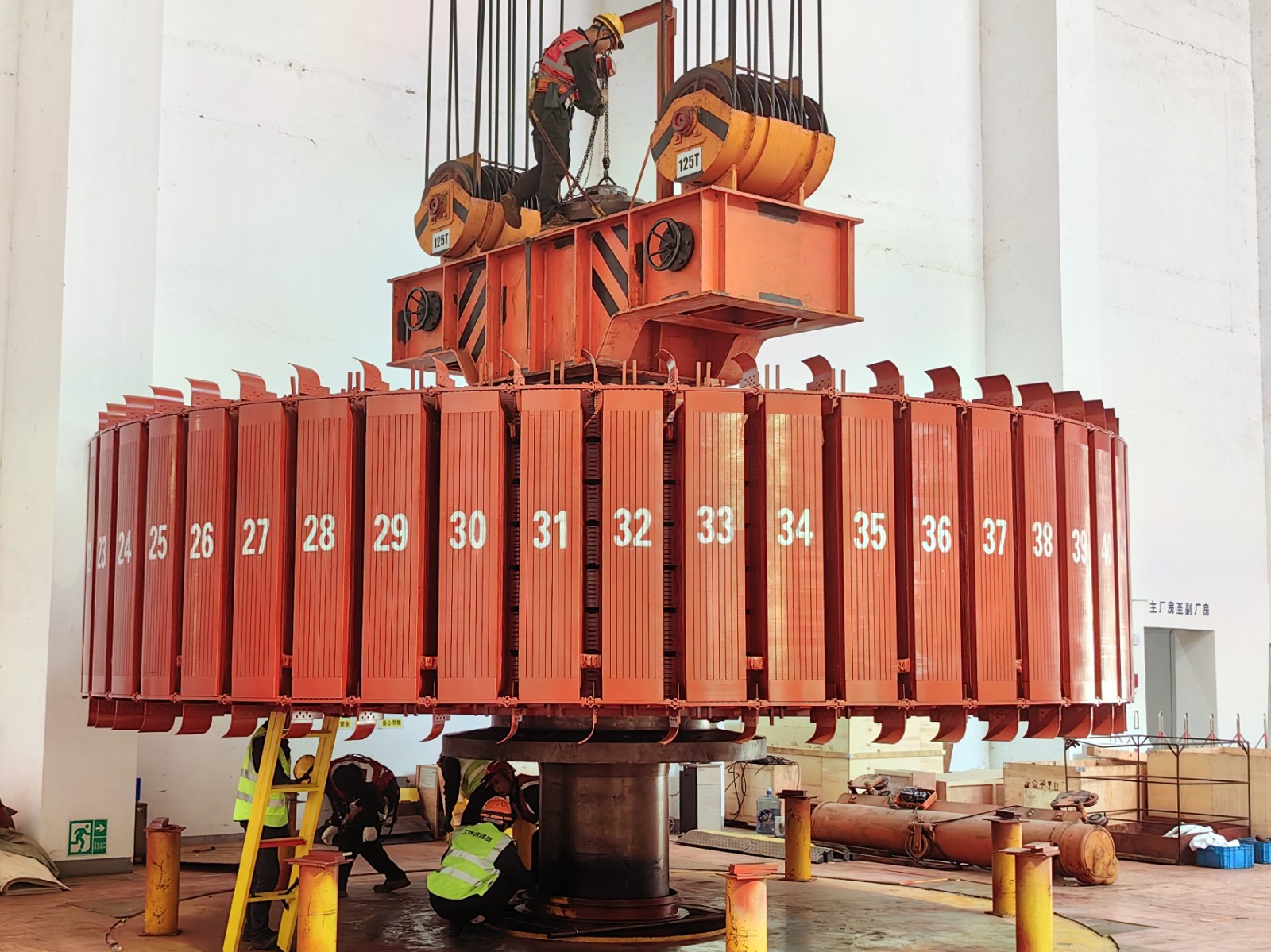 由于轉(zhuǎn)子與定子之間的間隙只有12毫米,要把這兩個(gè)“大家伙”精準(zhǔn)送回機(jī)坑指定位置并安裝好,難度系數(shù)非常高。川投電力高度重視,上下聯(lián)動(dòng),周密部署,全鏈條壓實(shí)安全生產(chǎn)責(zé)任,確保轉(zhuǎn)子回裝工作萬無一失。