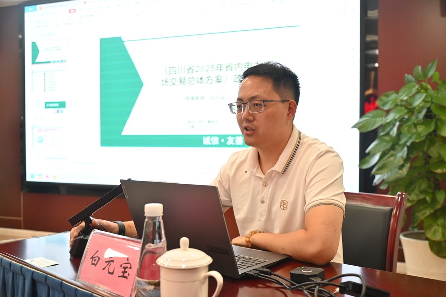此次培訓邀請到四川能投綜合能源有限責任公司電力交易分公司副總經理白元寶,圍繞四川省電力銷售政策、交易實施方案等方面內容進行詳細講授。白元寶首先對《四川省2025年省內電力市場交易總體方案》進行政策解讀;再從“水火風光同臺競爭、分時簽約銜現貨、零售市場防風險”核心變化點、對市場成員要求、電力批發交易、電力零售交易、價格及結算機制、市場銜接事項等方面進行講授;最后針對發電企業的電力交易方案,從中長期及現貨交易,圍繞規則要求、市場形勢、邊界條件、交易組織模式等方面進行詳細講解,并對現貨市場下的中長期交易、增強抗市場風險能力、構建交易組織體系、現貨市場的影響等重點、難點的核心事項進行了分析和講授。
