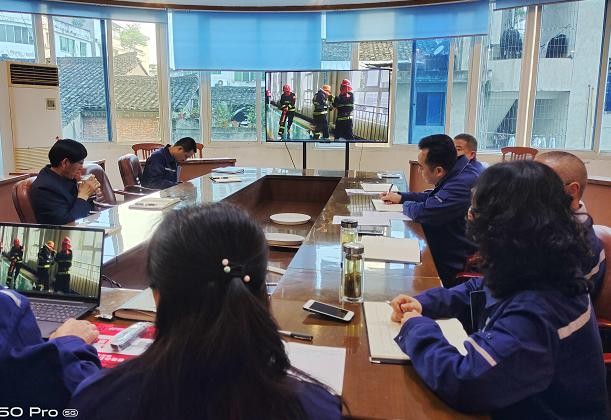 公司常務副總經理、消安委副主任何光富首先傳達四川省安全生產委員會文件精神,隨后與會人員共同觀看了《四川省安辦組織的消防宣傳“五進”云直播》。通過此次培訓,參會人員對如何建立消防組織機構、落實責任制、開展消防日常管理工作有了更深入的理解和認識,對消防器材的檢查保養使用方法及滅火疏散演練技能有了進一步的了解和掌握,從思想上和理論上提高了消防安全意識及消防安全技能知識。