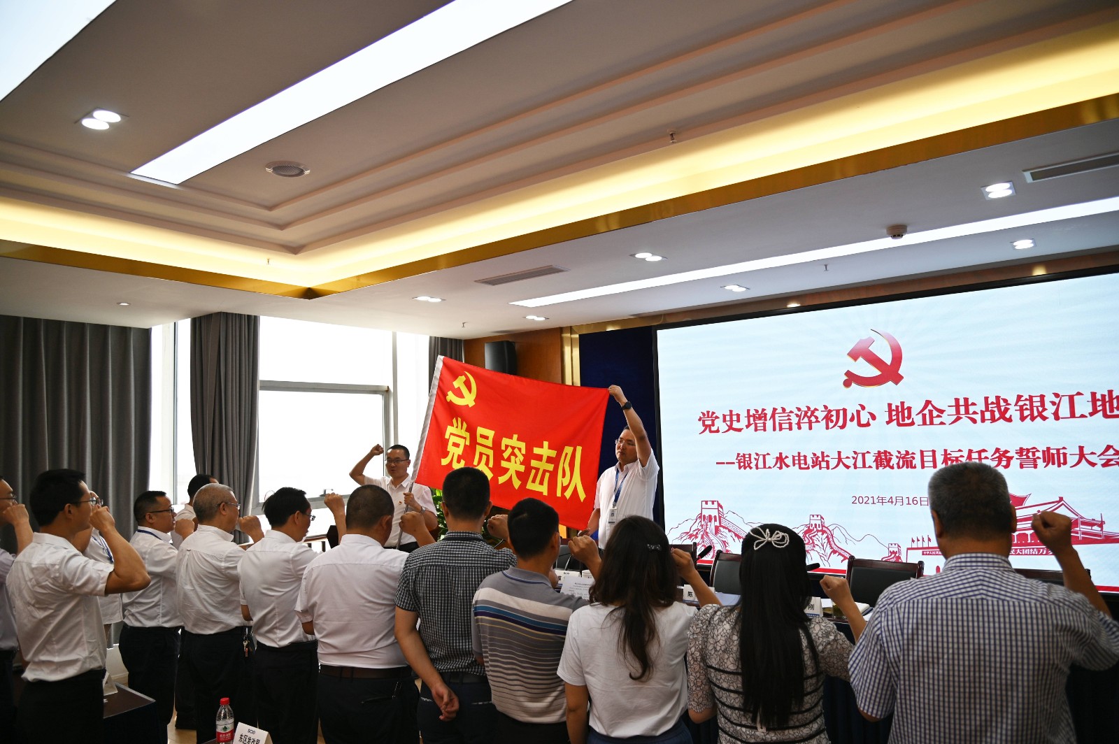 會(huì)上,全體參會(huì)人員共同學(xué)習(xí)了市委書記張正紅在市級(jí)領(lǐng)導(dǎo)干部和縣級(jí)主要負(fù)責(zé)同志讀書班暨市委理論學(xué)習(xí)中心組專題學(xué)習(xí)(擴(kuò)大)會(huì)議上的講話精神;蔡承德宣讀了銀江水電站項(xiàng)目建設(shè)黨員突擊隊(duì)人員名單;徐孝剛與陳康共同向黨員突擊隊(duì)授旗并簽訂目標(biāo)承諾書;全體突擊隊(duì)隊(duì)員在隊(duì)旗前進(jìn)行了莊重宣誓。