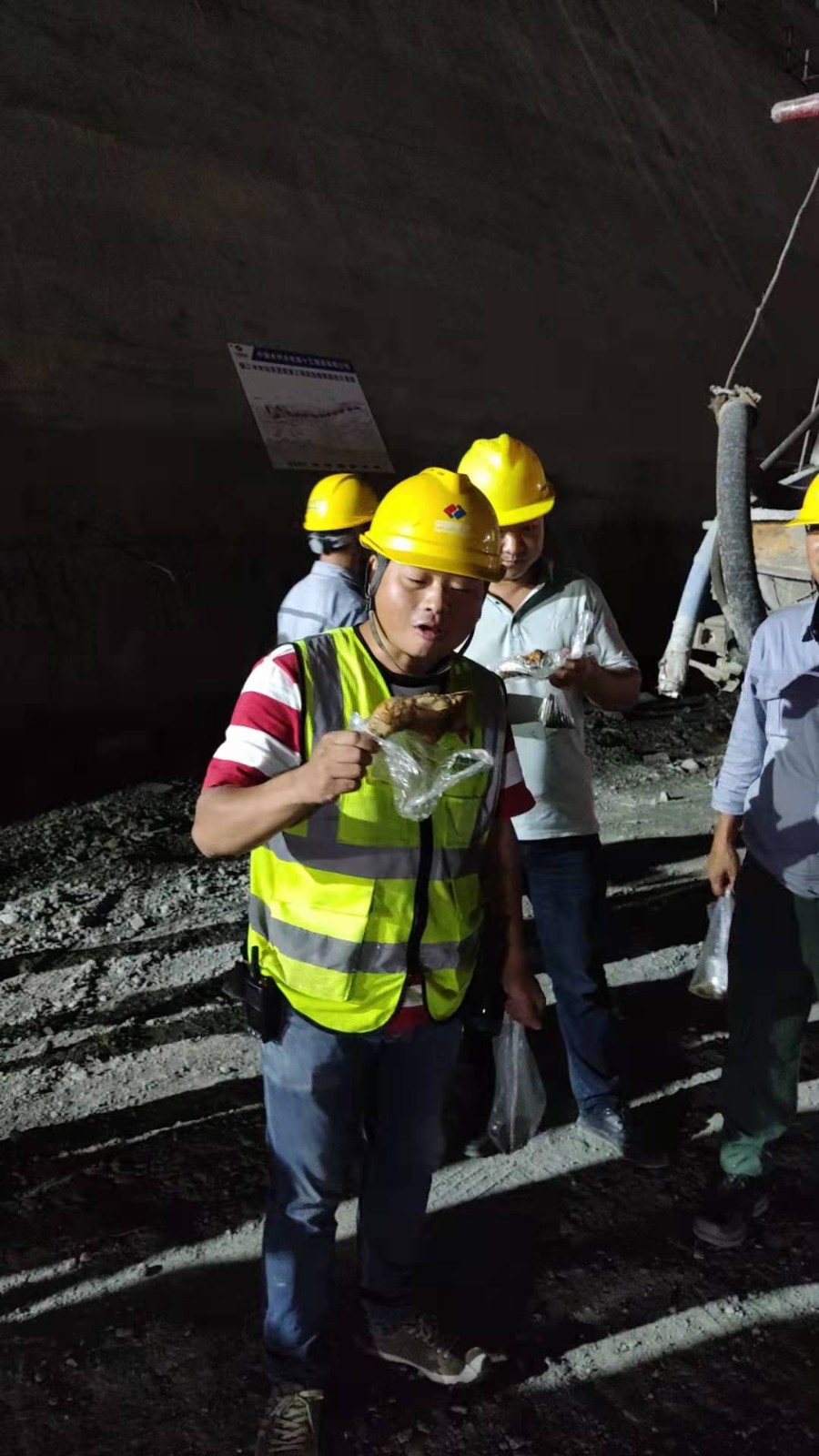 6月13日端午節前夕深夜,公司值班領導、黨總支委員、董事會秘書、工會主席鄧勇,總經理助理唐伽帶領值班人員,對銀江水電站工地現場防洪度汛值班點位及施工現場進行了檢查;公司志愿者服務隊共計10余人對節日期間堅守在銀江水電站工地夜間施工的一線人員進行了慰問。