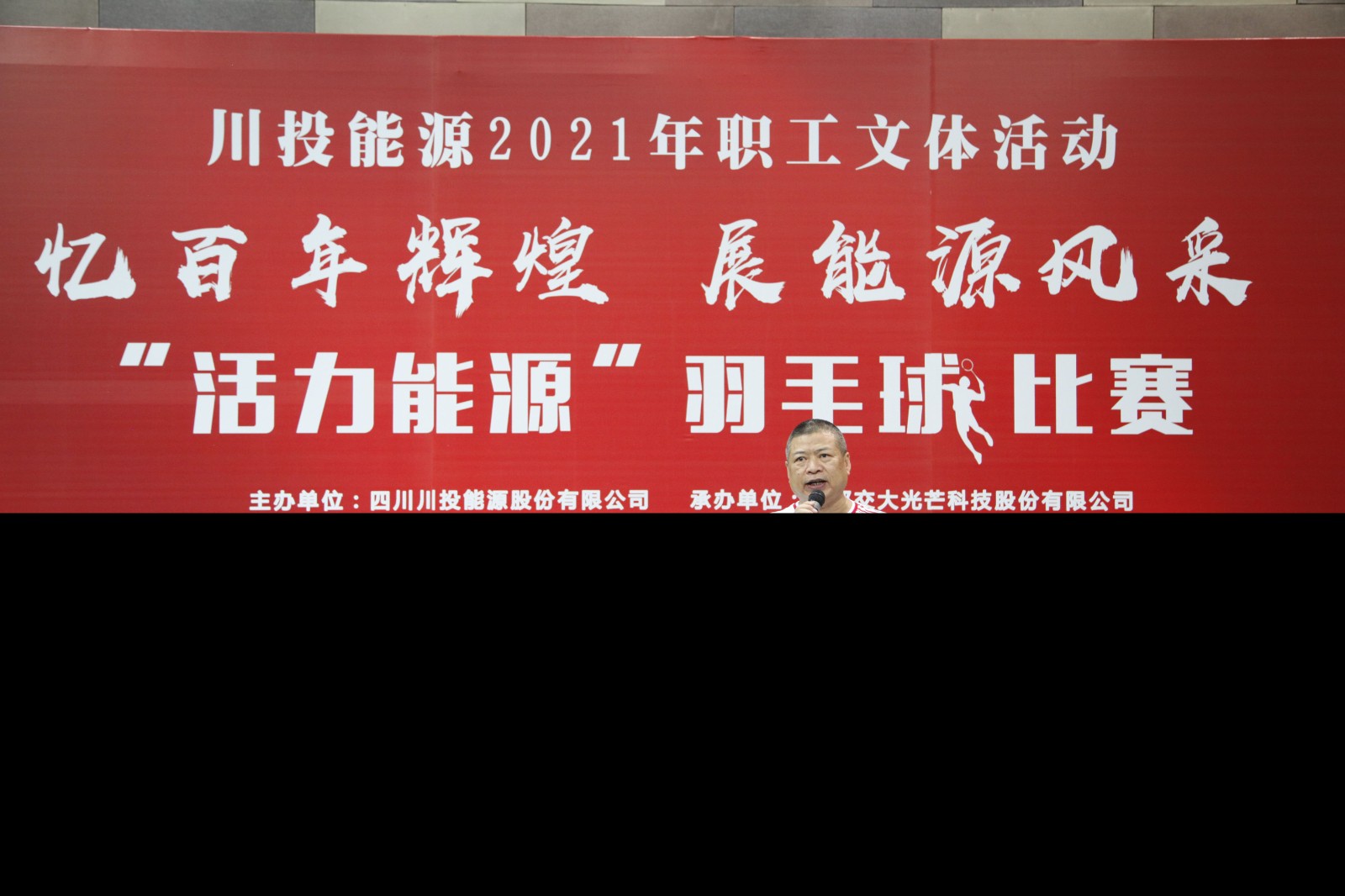 比賽在莊嚴的升國旗、唱國歌儀式中開幕,伴隨著雄渾高亢的《義勇軍進行曲》旋律,全體人員肅立,高唱中華人民共和國國歌。隨后,各參賽代表隊依次入場進行風采展示,運動員代表、裁判員代表先后宣誓。公司黨總支書記、總經理劉成輝代表承辦方致開幕詞。楊洪代表主辦方講話,對此次比賽的舉辦表示祝賀,對承辦本次羽毛球比賽的交大光芒公司全體同仁表示衷心感謝,并向全體運動員、裁判員、工作人員致以親切慰問,他要求,全體參賽選手要在比賽中繼續發揚體育精神、弘揚光榮傳統、賡續紅色血脈,樹立堅定勝利的信心,不怕失敗的恒心,不畏艱難的決心。他強調,川投能源全體職工要積極響應習近平總書記在慶祝中國共產黨成立100周年大會上的號召,用飽滿的熱情、拼搏的信念、團結的精神,繼續為實現中華民族偉大復興不懈努力,努力為黨和人民爭取更大光榮。