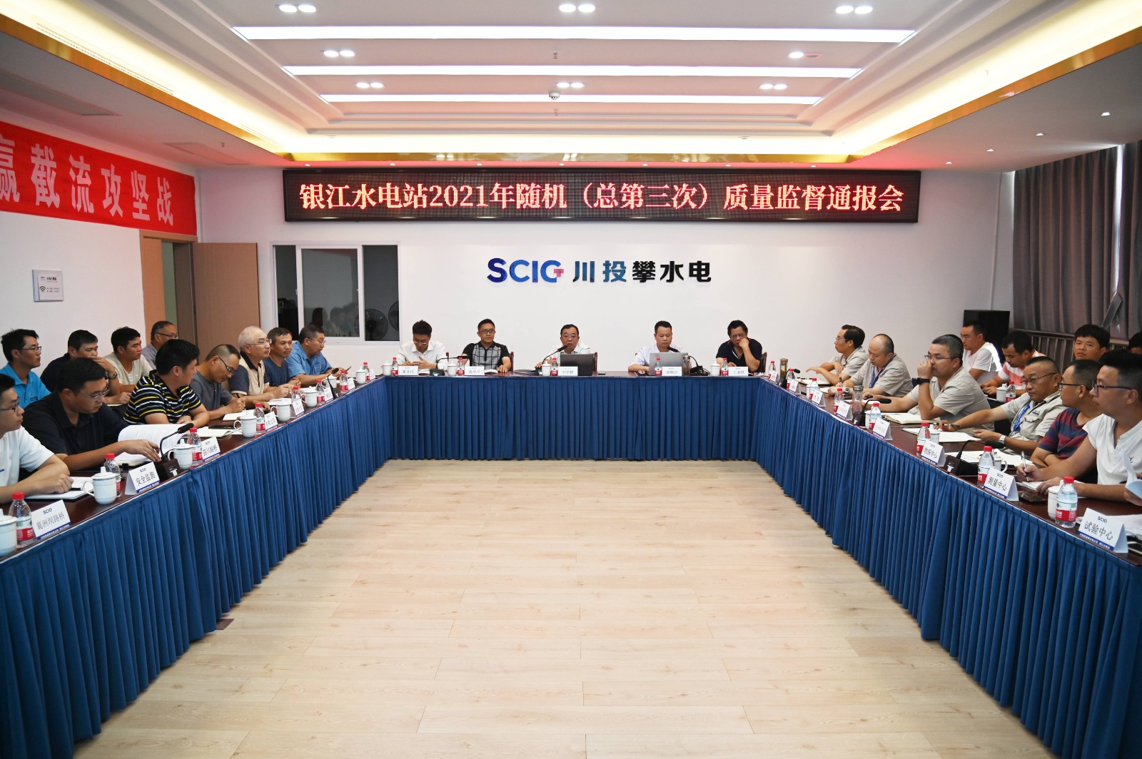 隨后,專家組對各參建單位的質(zhì)量管理體系建立和運行情況、現(xiàn)場質(zhì)量驗收情況及試驗檢測情況等質(zhì)量管理內(nèi)業(yè)資料進(jìn)行了仔細(xì)核查并召開了質(zhì)量監(jiān)督通報會。會上專家組根據(jù)現(xiàn)場工程質(zhì)量及質(zhì)量管理內(nèi)業(yè)資料的檢查情況,指出了工程質(zhì)量管理及現(xiàn)場施工過程中存在的問題,并對各參建單位質(zhì)量管理工作及現(xiàn)場工程質(zhì)量提出了寶貴的意見和建議,要求各參建單位在會后立即自查自糾、舉一反三,結(jié)合本次檢查發(fā)現(xiàn)的問題,按照“五定”原則認(rèn)真整改落實。劉學(xué)鵬指出,銀江水電站建設(shè)進(jìn)度是同類型電站中的佼佼者,工程質(zhì)量管理體系健全,現(xiàn)場質(zhì)量管理工作井然有序,工程質(zhì)量總體較好。他指出,一是各參建單位要繼續(xù)提高質(zhì)量管理意識,杜絕發(fā)生質(zhì)量事故,降低質(zhì)量通病發(fā)生率;二是各參建單位要做好雨季施工措施,落實防洪度汛方案及應(yīng)急預(yù)案,保證混凝土澆筑質(zhì)量,確保銀江水電站安全度汛。