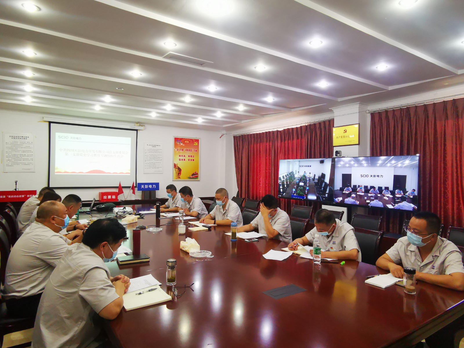 根據(jù)川投能源黨委和天彭電力黨總支黨史學(xué)習(xí)教育安排部署,近日天彭電力第一黨支部以“學(xué)黨史、悟思想、辦實(shí)事、開新局”為主題,組織支部全體黨員召開了黨史學(xué)習(xí)教育專題組織生活會,天彭電力黨總支書記、總經(jīng)理陳忠以普通黨員身份參會。因疫情防控需要,川投能源黨委委員、副總經(jīng)理、總法律顧問楊平通過視頻方式督導(dǎo)會議,并講授了專題黨課。